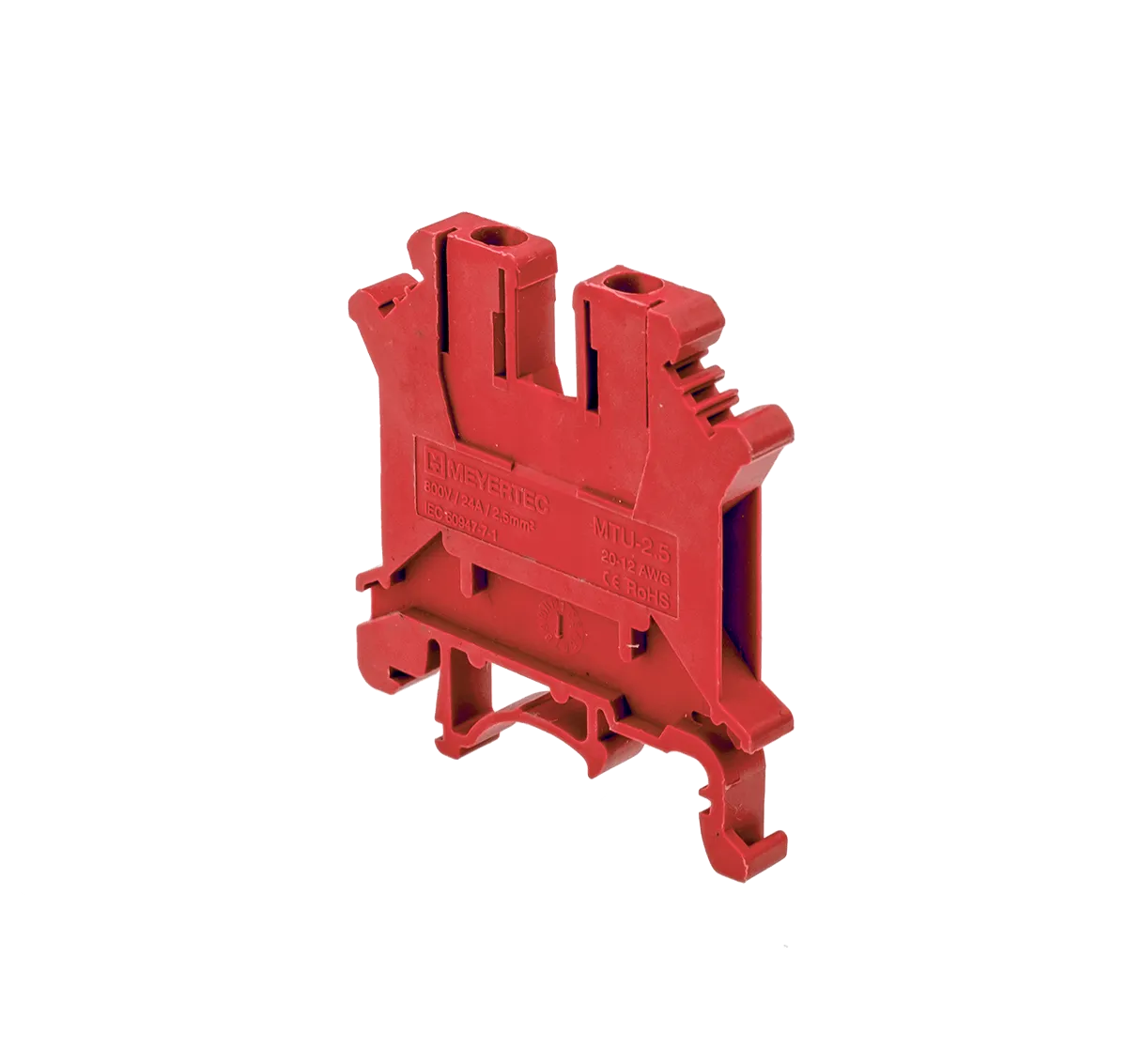 Одноуровневые винтовые клеммы MTU-2.5RD – простой и удобный способ подключения устройств в шкафах автоматики. Клеммы MTU-2.5 предназначены для проводников сечением 2,5мм2. Открытую токопроводящую часть клеммного ряда необходимо закрыть торцевой заглушкой. Одноуровневые клеммы имеют одинаковые габаритные размеры для всех сечений, кроме ширины, которая зависит от сечения выбираемого проводника.